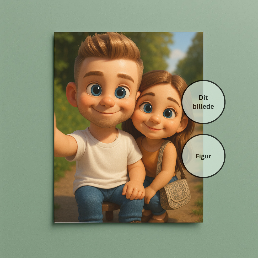 Vores idé bygger på AI-trenden med at forvandle billeder til sjove og søde stilarter. Vi gør det nemt for dig: Du sender et billede, vi klarer resten – fra stilvalg til finpudsning – og leverer det som en flot plakat, klar til at glæde én, du holder af.