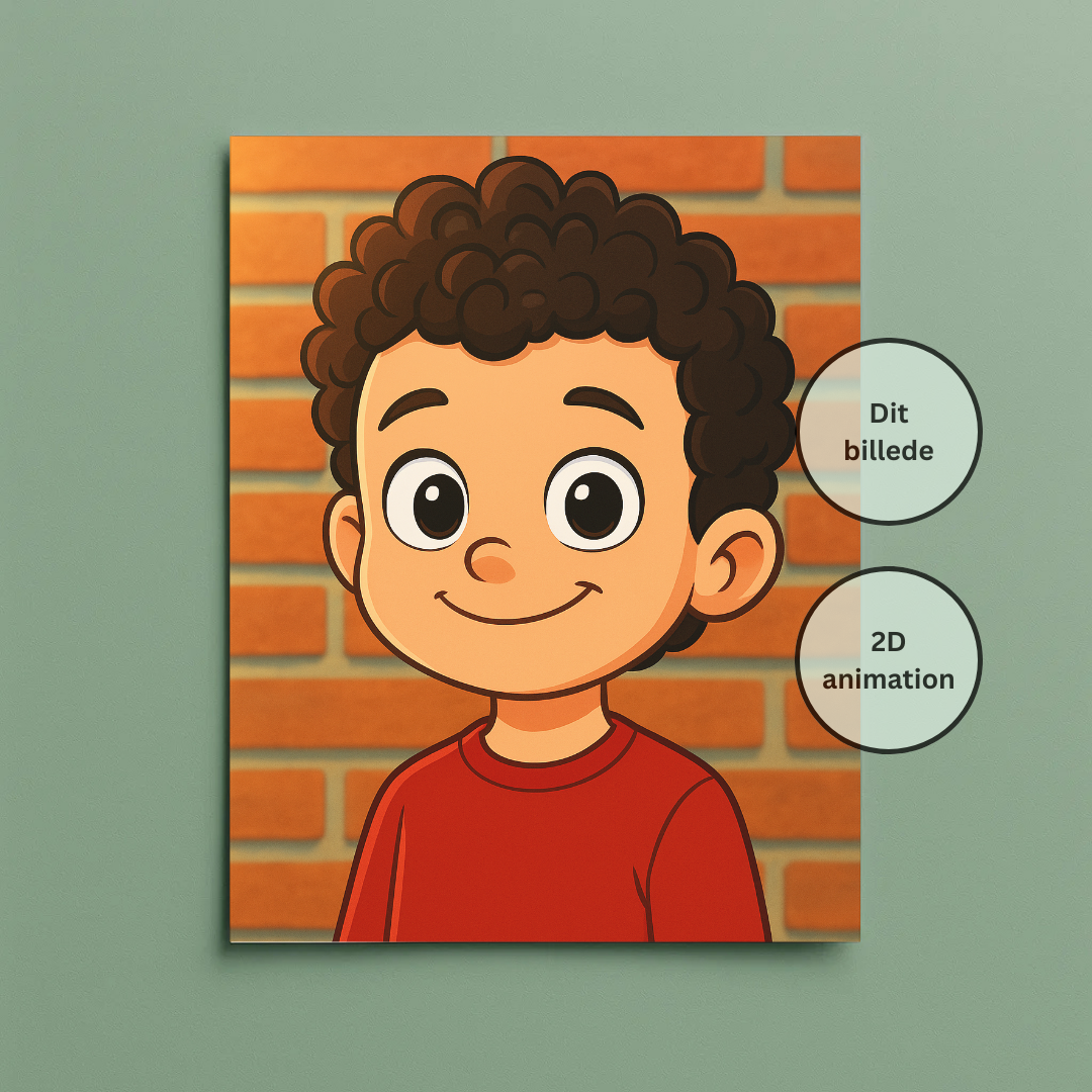Du vælger bare én af vores 6 sjove og fine styles (f.eks. Chibi, Ghibli eller 2D animation), og så klarer vi resten. Vi laver dit billede i den stil du vælger og trykker det på lækkert, mat papir i høj kvalitet.
